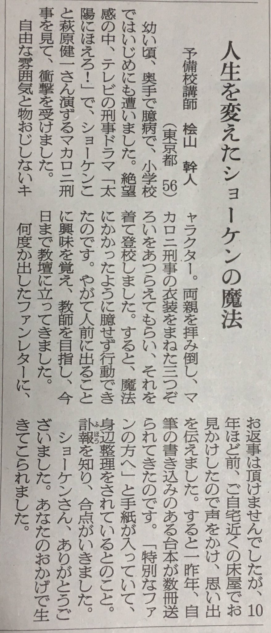 萩原研二 朝日新聞に 萩原健一 の名前の掲載が続いています 4 19朝刊 声 の欄 人生を変えたショーケンの魔法